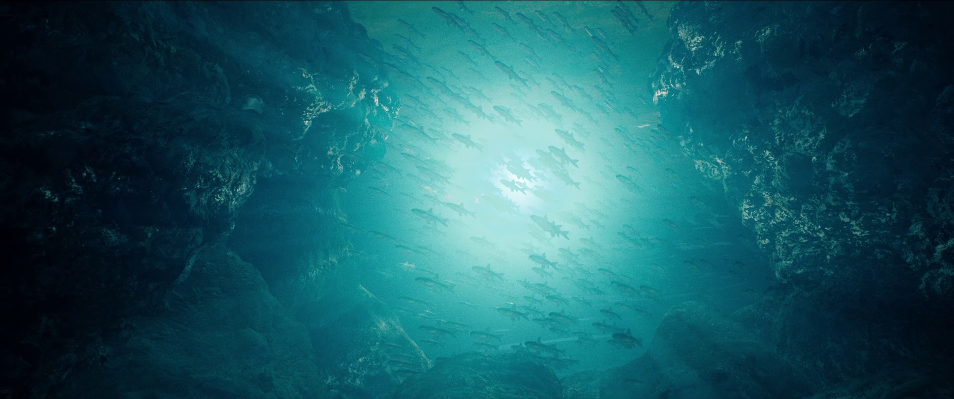 I created the school of fish via a Niagara particle system. The frequency and amplitude of their swim animation is determined via world position offsets in their material which are dynamically modulated in the Niagara particle system. On an older Nvidia GeForce GTX 1060 this scene runs at a consistent 60FPS.